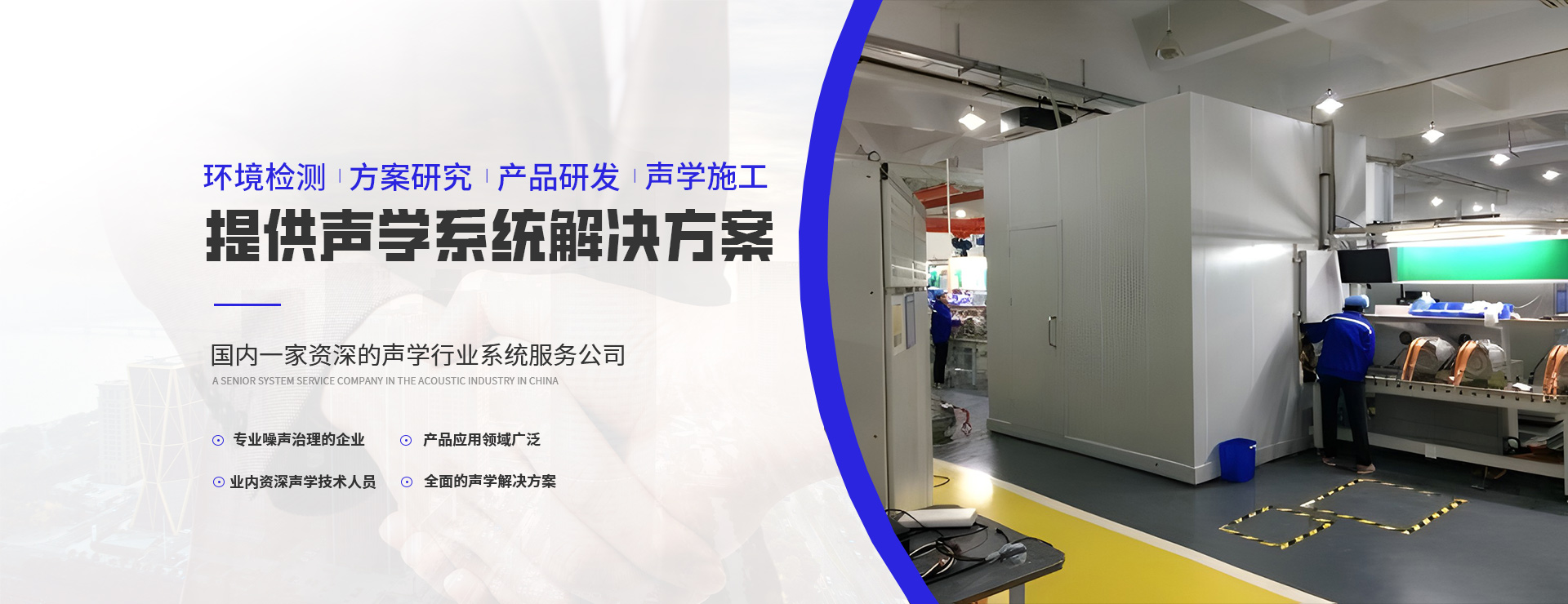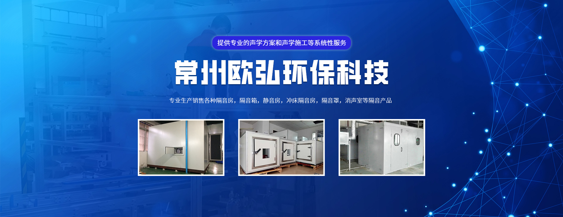 常州歐弘環保科技有限公司是一家專注噪聲治理的企業,公司專注生產銷售各種隔音房,隔音箱,靜音房,沖床隔音房,隔音罩,消聲室等隔音產品。客戶涵蓋汽車、家電、醫療、健身器械等眾多行業?! ∥夜緦W⒂跒榭蛻籼峁┞暛h境深度檢測;聲學方案研究、設計;聲學產品研發、優選;聲學施工與驗收的一整套聲學系統解決方案,是國內成熟的聲學行業系統服務公司。  我們的服務領域:致力于研究并開發高性能、高性價